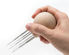 This wooden tool features a large, ergonomic ball grip for comfortable felting and seven precision cut holes that are drilled perfectly straight and just the right size to hold *unpainted* needles without them wiggling. The tool comes packaged in a handsome box with seven of our size 38 Star needles. Any felting needles will fit in the tool though, as long as they are unpainted. If you prefer to work with a different gauge of needle, simply take out the ones that come with the tool and put in the other needles.