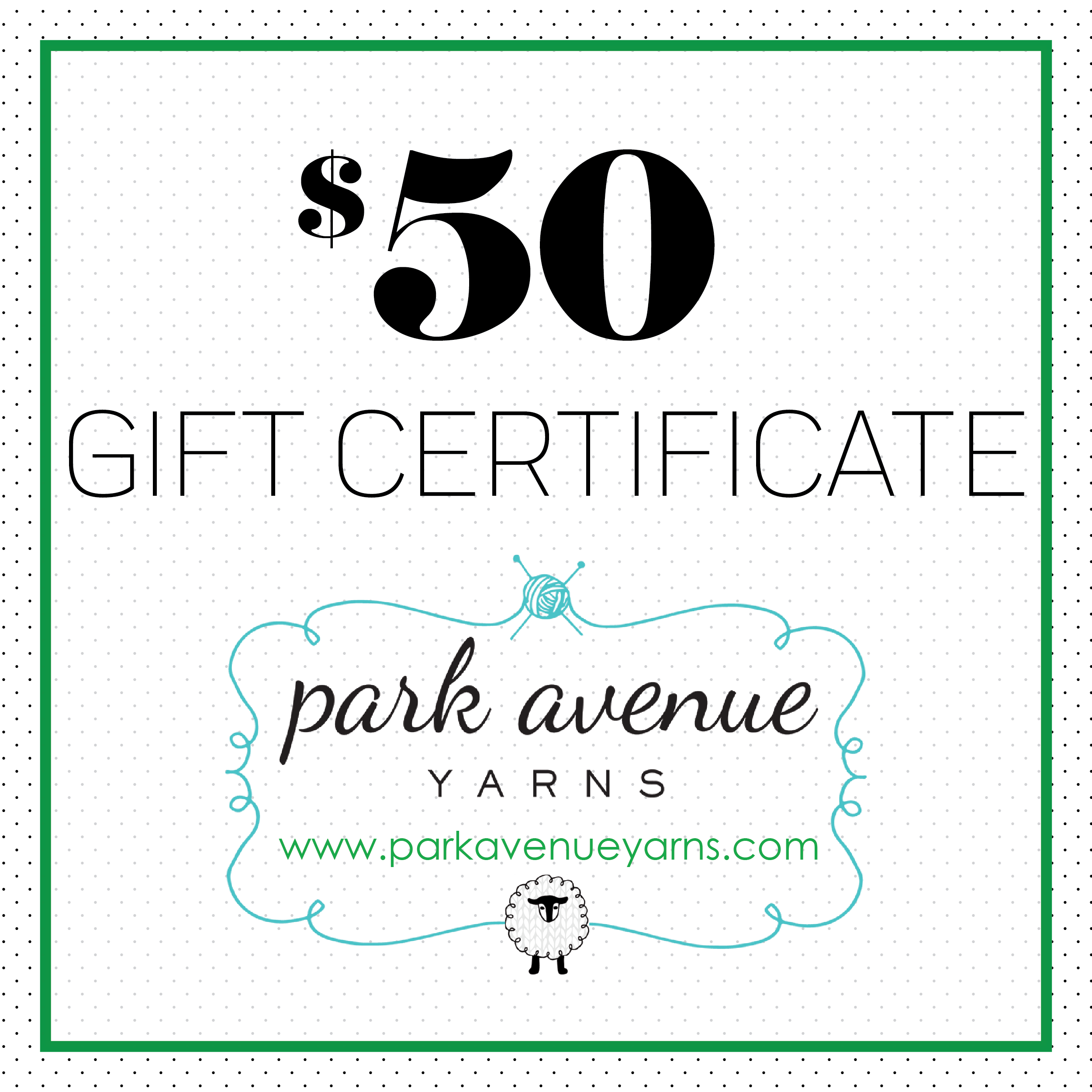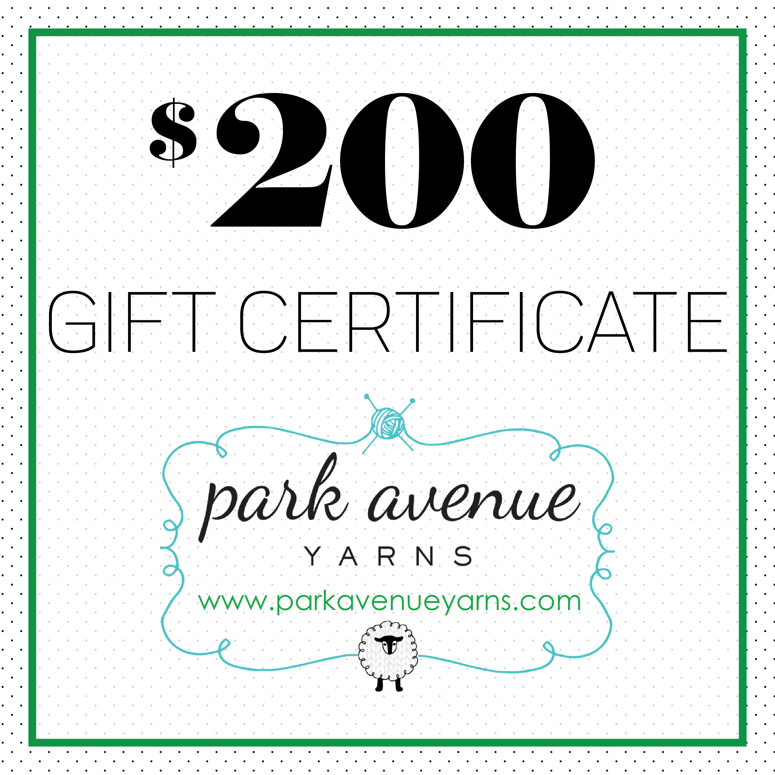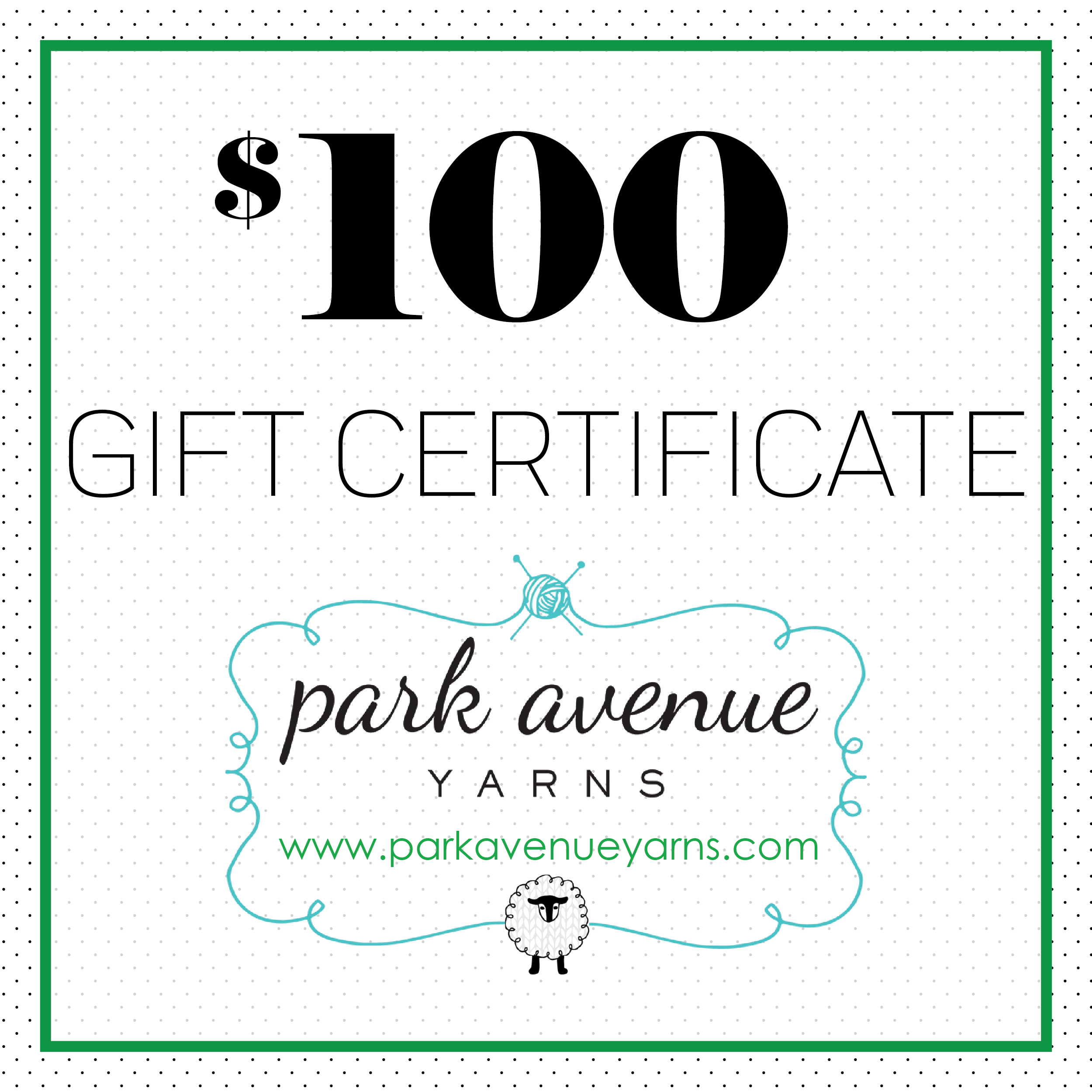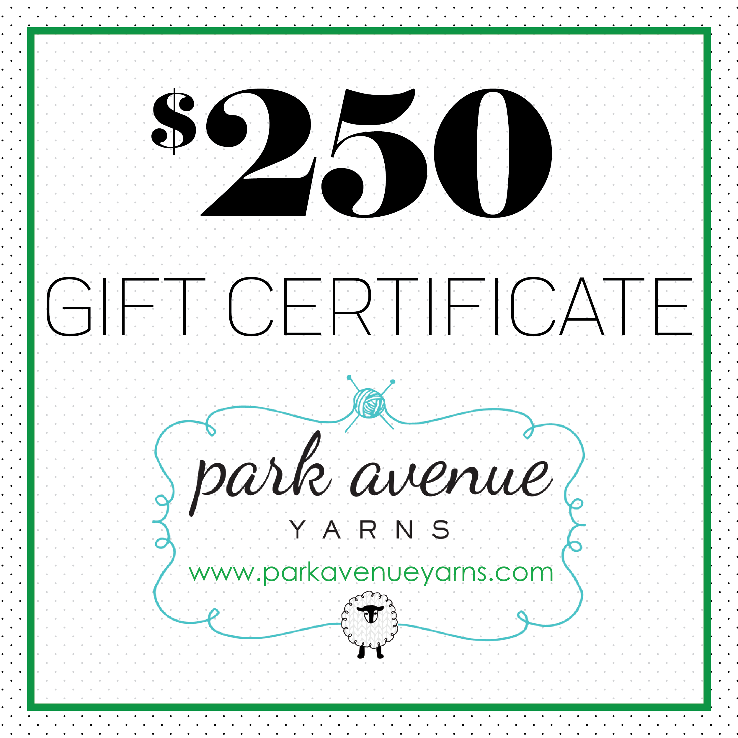 Park Avenue Yarns Gift Certificate - is backordered and will ship as soon as it is back in stock.